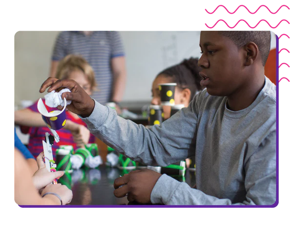Hands-on learning through tinkering with inputs, outputs, sensors, and motors to gain tech literacy.