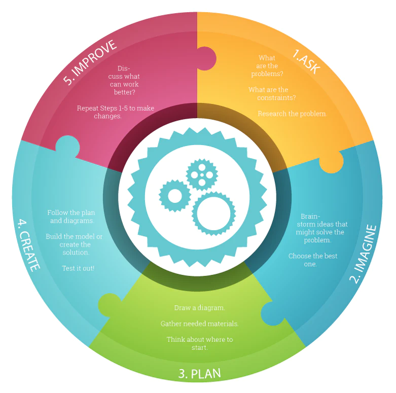 The Engineering Design Process is at the heart of our STEAM journey. The process is a series of steps that students follow to come up with a solution to an inquiry that meets certain criteria and/or accomplishes a certain task.