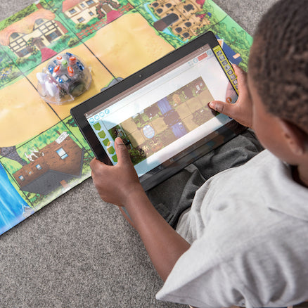 You can program Blue-Bot with a wide range of tablets, a PC, Mac, or our very own TacTile Reader. The tablet app features a host of programming challenges and problems for children to solve by constructing the correct program.